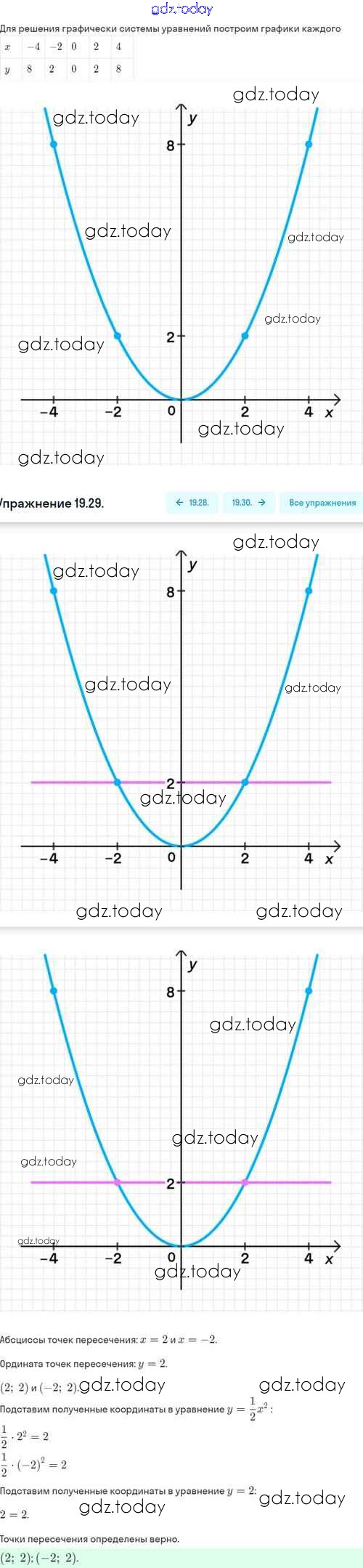 Ответы к Решение. §19. Функция y=kx², её свойства и график 19.29 Задачнику по Алгебре для 8 класса Мордкович, Александрова Базовый уровень Мнемозина 2021