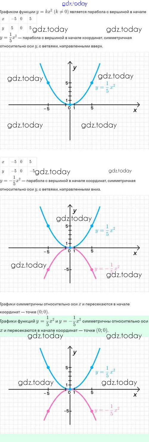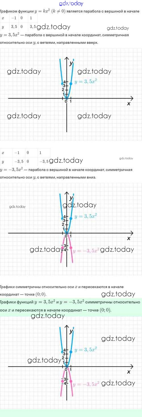 Ответы к Решение. §19. Функция y=kx², её свойства и график 19.6 Задачнику по Алгебре для 8 класса Мордкович, Александрова Базовый уровень Мнемозина 2021