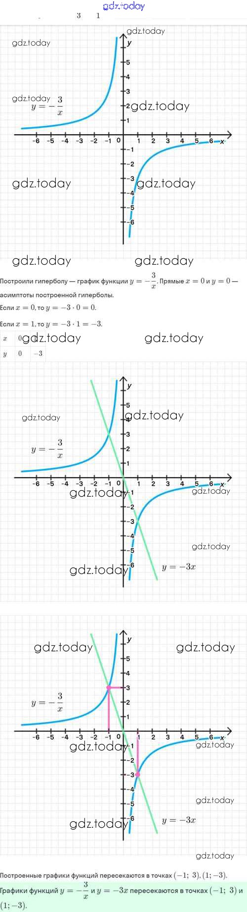 Ответы к Решение. §20. Функция y=k/x, её свойства и график 20.13 Задачнику по Алгебре для 8 класса Мордкович, Александрова Базовый уровень Мнемозина 2021