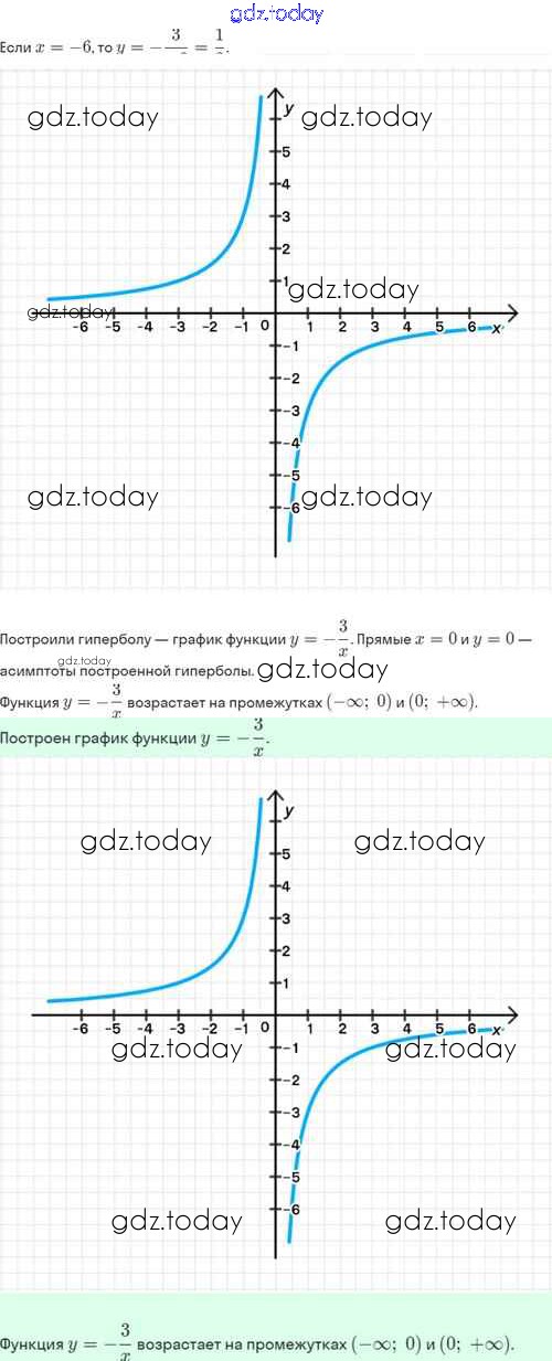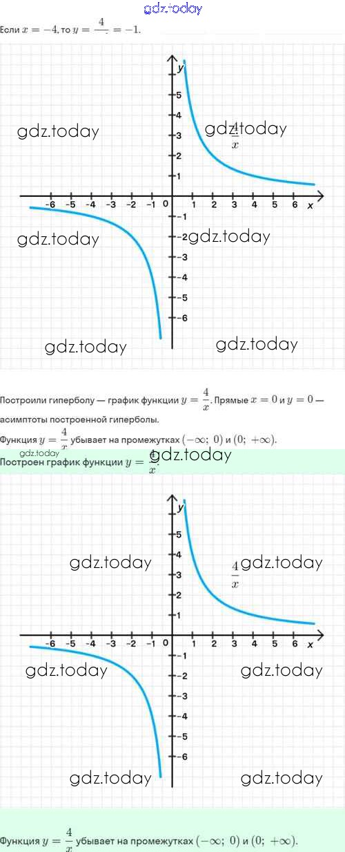 Ответы к Решение. §20. Функция y=k/x, её свойства и график 20.2 Задачнику по Алгебре для 8 класса Мордкович, Александрова Базовый уровень Мнемозина 2021