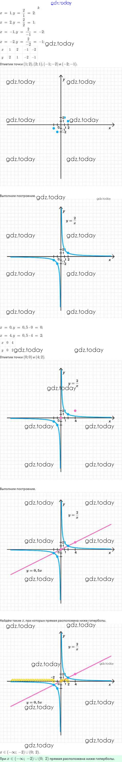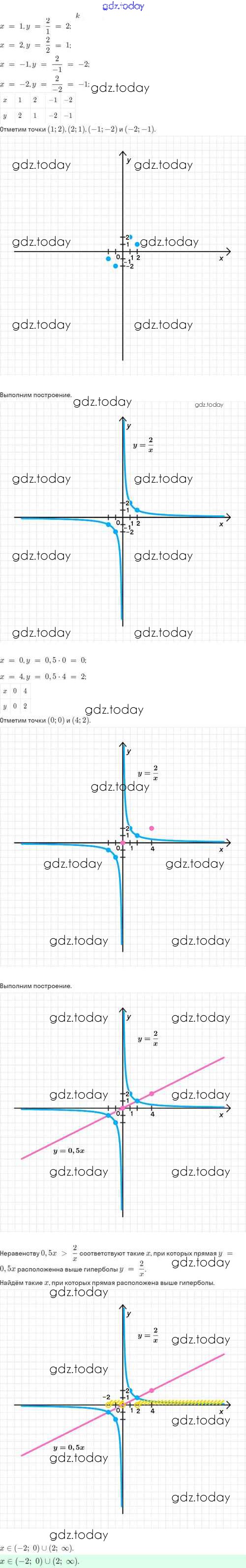 Ответы к Решение. §20. Функция y=k/x, её свойства и график 20.20 Задачнику по Алгебре для 8 класса Мордкович, Александрова Базовый уровень Мнемозина 2021