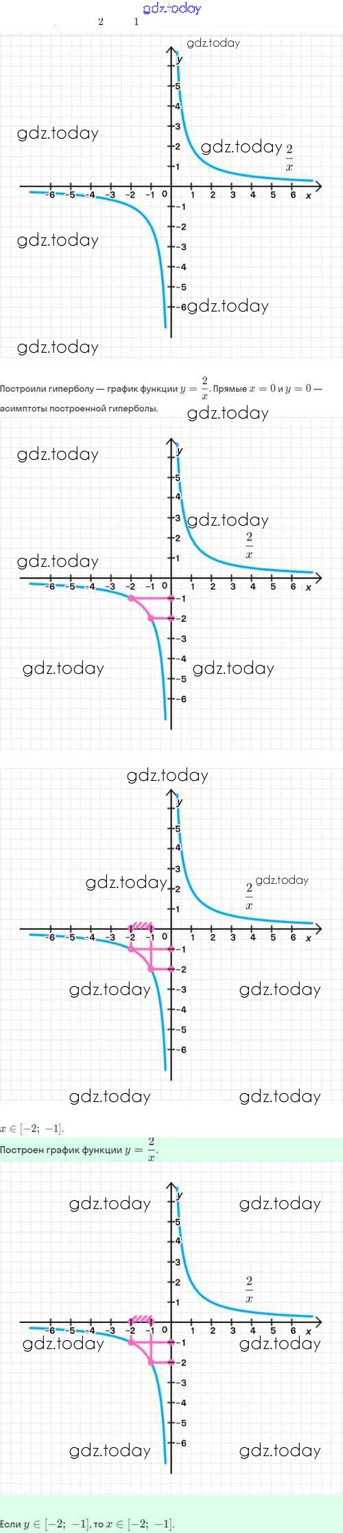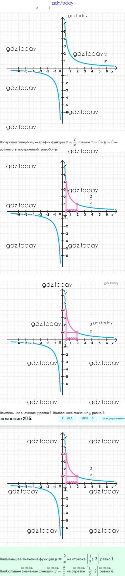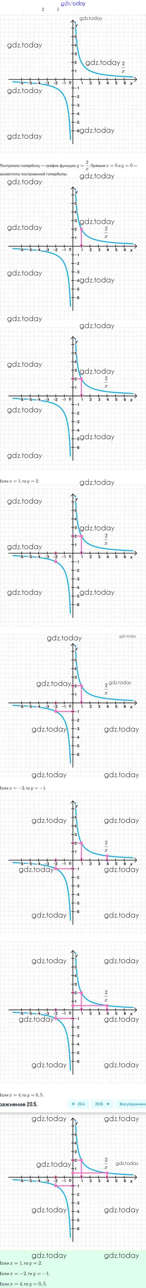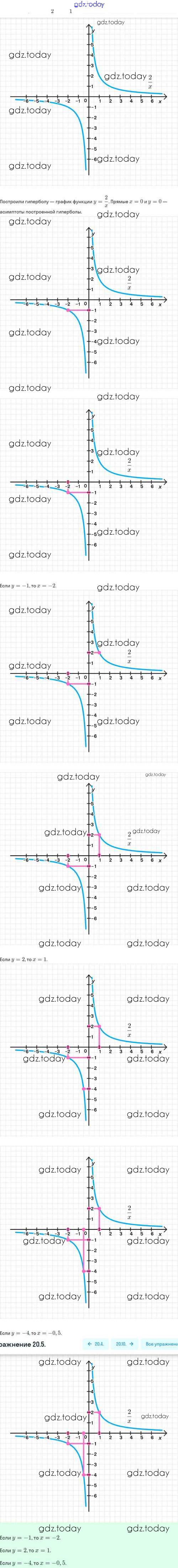 Ответы к Решение. §20. Функция y=k/x, её свойства и график 20.5 Задачнику по Алгебре для 8 класса Мордкович, Александрова Базовый уровень Мнемозина 2021