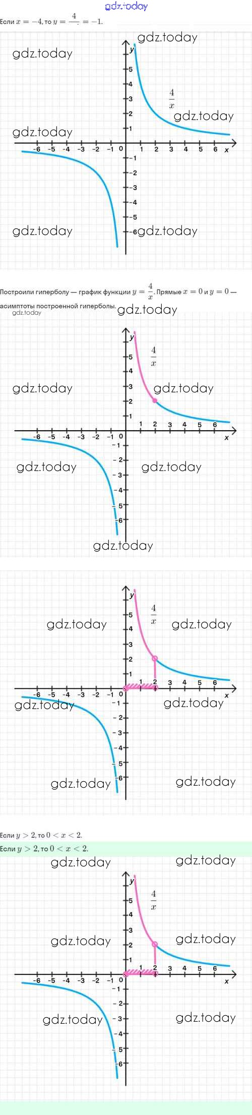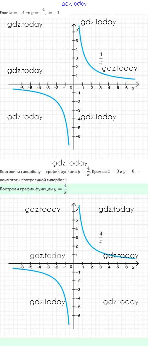 Ответы к Решение. §20. Функция y=k/x, её свойства и график 20.7 Задачнику по Алгебре для 8 класса Мордкович, Александрова Базовый уровень Мнемозина 2021