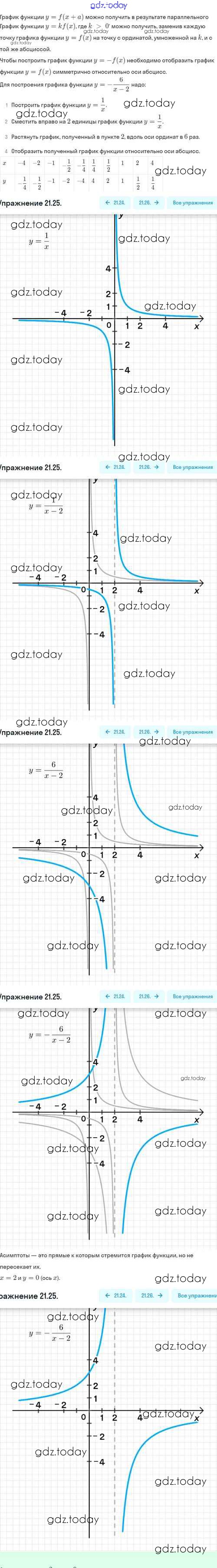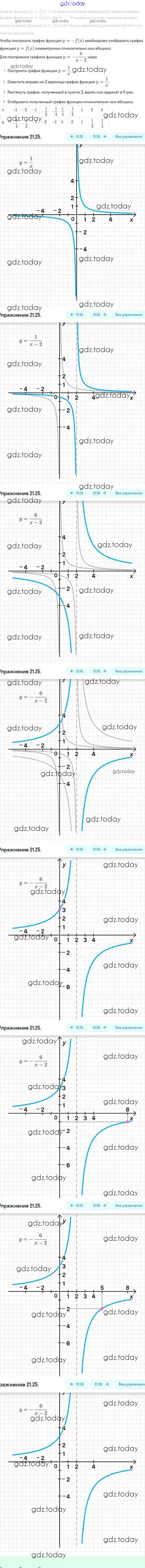 На страницах сайта gdz.today вы найдете учебный и вспомогательный материал, направленный на улучшения знаний школьной программы. ГДЗ - онлайн мир знаний Решение. §21. Как построить график функции y=f(x+l), если известен график функции y=f(x) 21.25 Задачнику по Алгебре для 8 класса Мордкович, Александрова Базовый уровень Мнемозина 2021