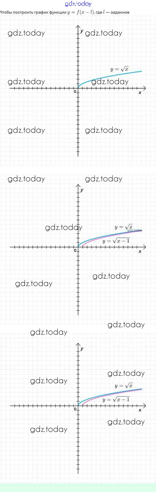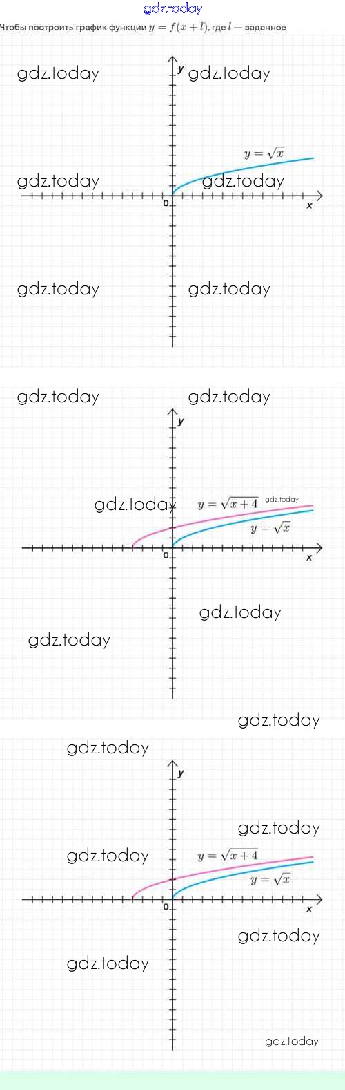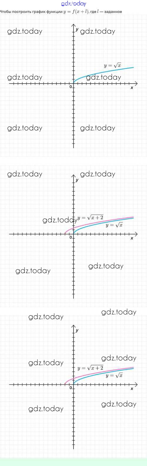 На страницах сайта gdz.today вы найдете учебный и вспомогательный материал, направленный на улучшения знаний школьной программы. ГДЗ - онлайн мир знаний Решение. §21. Как построить график функции y=f(x+l), если известен график функции y=f(x) 21.3 Задачнику по Алгебре для 8 класса Мордкович, Александрова Базовый уровень Мнемозина 2021