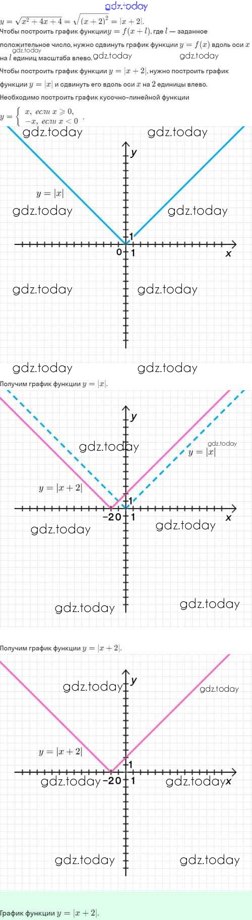 На страницах сайта gdz.today вы найдете учебный и вспомогательный материал, направленный на улучшения знаний школьной программы. ГДЗ - онлайн мир знаний Решение. §21. Как построить график функции y=f(x+l), если известен график функции y=f(x) 21.39 Задачнику по Алгебре для 8 класса Мордкович, Александрова Базовый уровень Мнемозина 2021
