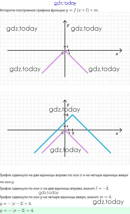 На страницах сайта gdz.today вы найдете учебный и вспомогательный материал, направленный на улучшения знаний школьной программы. ГДЗ - онлайн мир знаний Решение. §23. Как построить график функции y=f(x+l)+m, если известен график функции y=f(x) 23.14 Задачнику по Алгебре для 8 класса Мордкович, Александрова Базовый уровень Мнемозина 2021