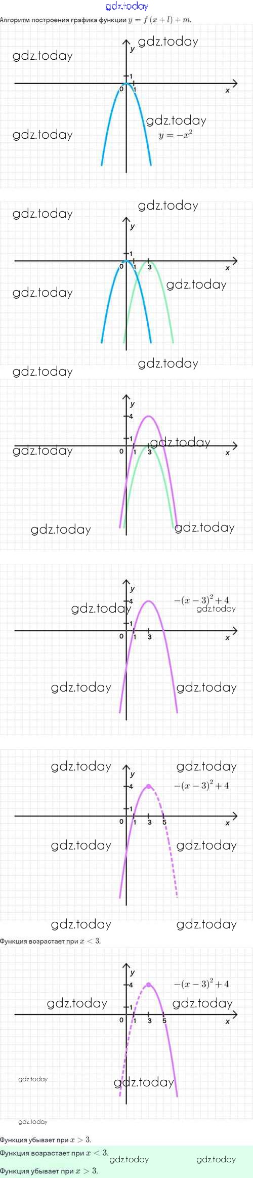 На страницах сайта gdz.today вы найдете учебный и вспомогательный материал, направленный на улучшения знаний школьной программы. ГДЗ - онлайн мир знаний Решение. §23. Как построить график функции y=f(x+l)+m, если известен график функции y=f(x) 23.18 Задачнику по Алгебре для 8 класса Мордкович, Александрова Базовый уровень Мнемозина 2021