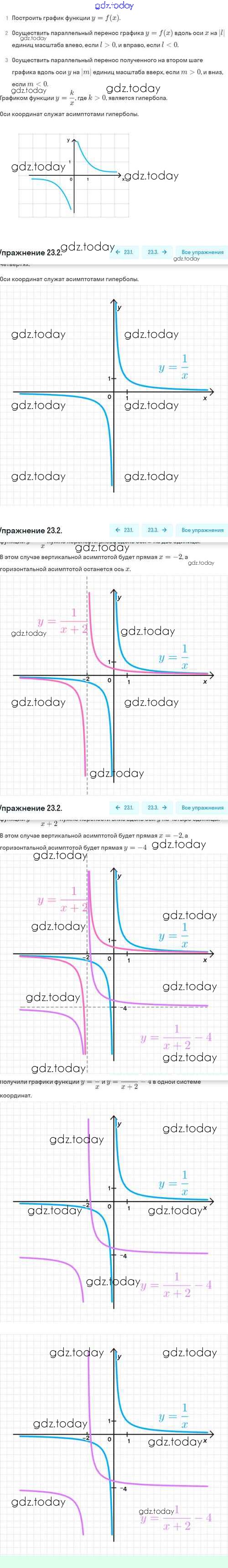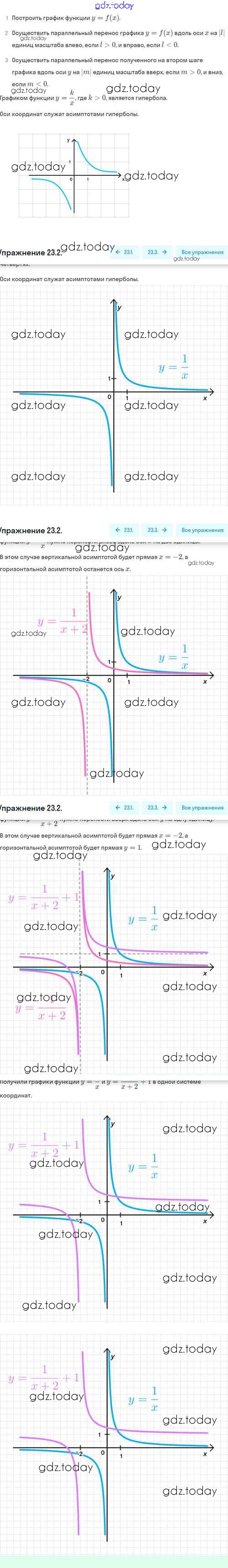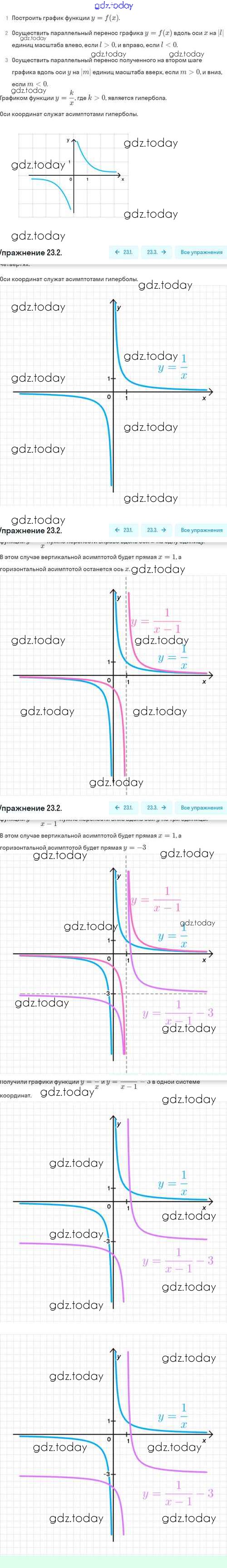 На страницах сайта gdz.today вы найдете учебный и вспомогательный материал, направленный на улучшения знаний школьной программы. ГДЗ - онлайн мир знаний Решение. §23. Как построить график функции y=f(x+l)+m, если известен график функции y=f(x) 23.2 Задачнику по Алгебре для 8 класса Мордкович, Александрова Базовый уровень Мнемозина 2021