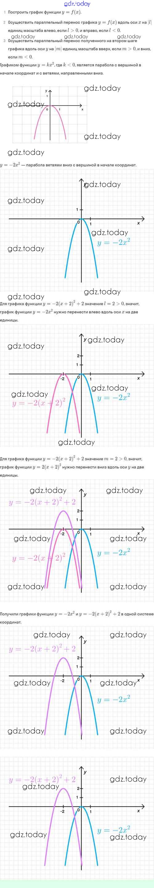 На страницах сайта gdz.today вы найдете учебный и вспомогательный материал, направленный на улучшения знаний школьной программы. ГДЗ - онлайн мир знаний Решение. §23. Как построить график функции y=f(x+l)+m, если известен график функции y=f(x) 23.3 Задачнику по Алгебре для 8 класса Мордкович, Александрова Базовый уровень Мнемозина 2021