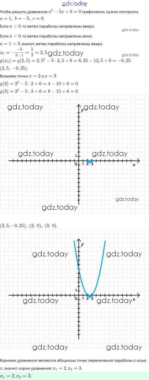 Ответы к Решение. §25. Графическое решение квадратных уравнений 25.7 Задачнику по Алгебре для 8 класса Мордкович, Александрова Базовый уровень Мнемозина 2021