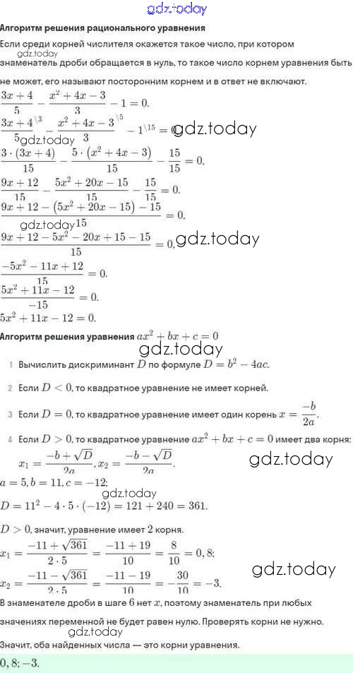 Ответы к Решение. §29. Рациональные уравнения 29.3 Задачнику по Алгебре для 8 класса Мордкович, Александрова Базовый уровень Мнемозина 2021