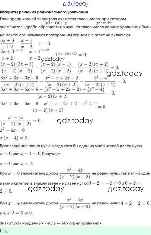 На страницах сайта gdz.today вы найдете учебный и вспомогательный материал, направленный на улучшения знаний школьной программы. ГДЗ - онлайн мир знаний Решение. §29. Рациональные уравнения 29.8 Задачнику по Алгебре для 8 класса Мордкович, Александрова Базовый уровень Мнемозина 2021
