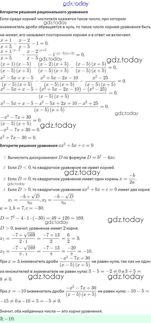 Ответы к Решение. §29. Рациональные уравнения 29.8 Задачнику по Алгебре для 8 класса Мордкович, Александрова Базовый уровень Мнемозина 2021