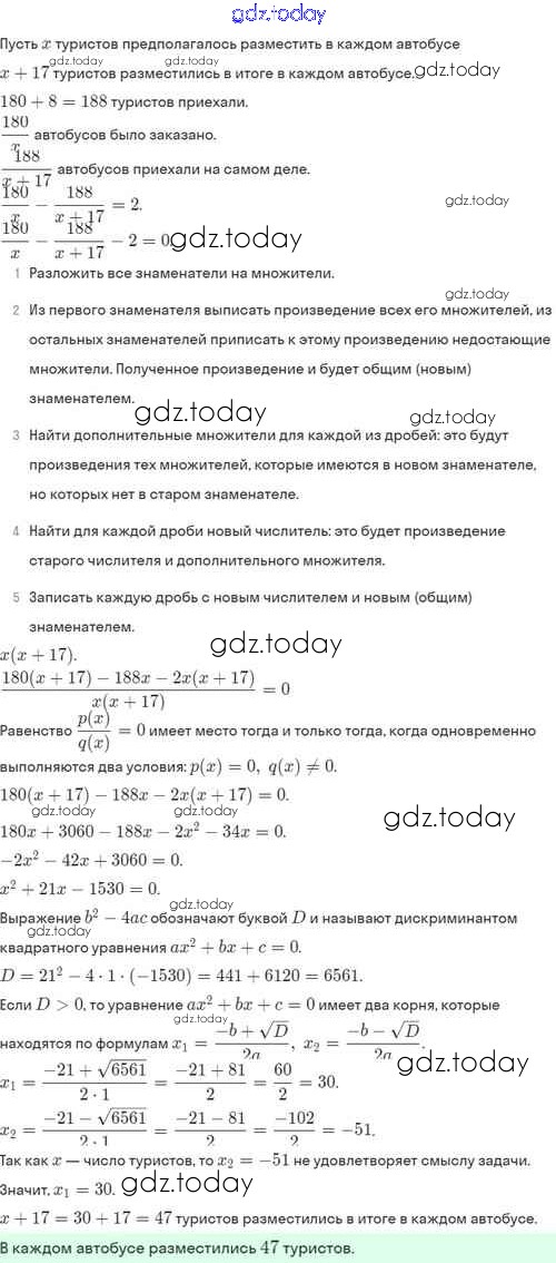 На страницах сайта gdz.today вы найдете учебный и вспомогательный материал, направленный на улучшения знаний школьной программы. ГДЗ - онлайн мир знаний Решение. §30. Рациональные уравнения как математические модели реальных ситуаций 30.40 Задачнику по Алгебре для 8 класса Мордкович, Александрова Базовый уровень Мнемозина 2021