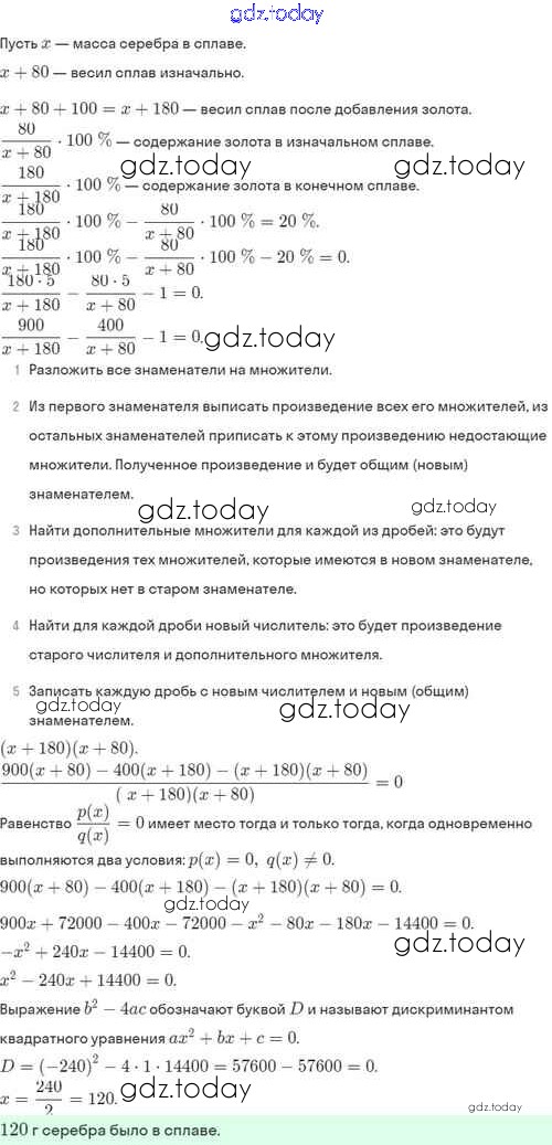 Ответы к Решение. §30. Рациональные уравнения как математические модели реальных ситуаций 30.44 Задачнику по Алгебре для 8 класса Мордкович, Александрова Базовый уровень Мнемозина 2021