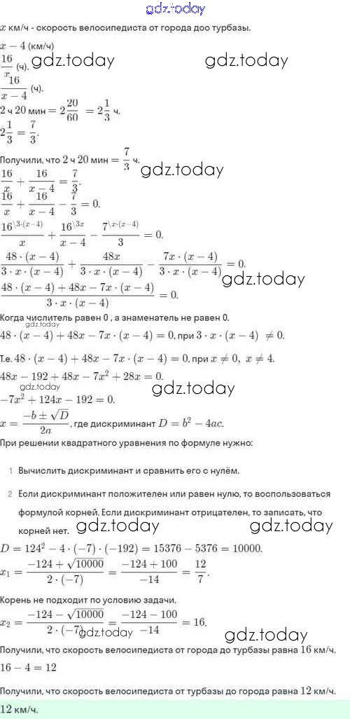 Ответы к Решение. §30. Рациональные уравнения как математические модели реальных ситуаций 30.9 Задачнику по Алгебре для 8 класса Мордкович, Александрова Базовый уровень Мнемозина 2021