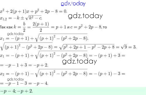 Ответы к Решение. §31. Ещё одна формула корней квадратного уравнения 31.21 Задачнику по Алгебре для 8 класса Мордкович, Александрова Базовый уровень Мнемозина 2021