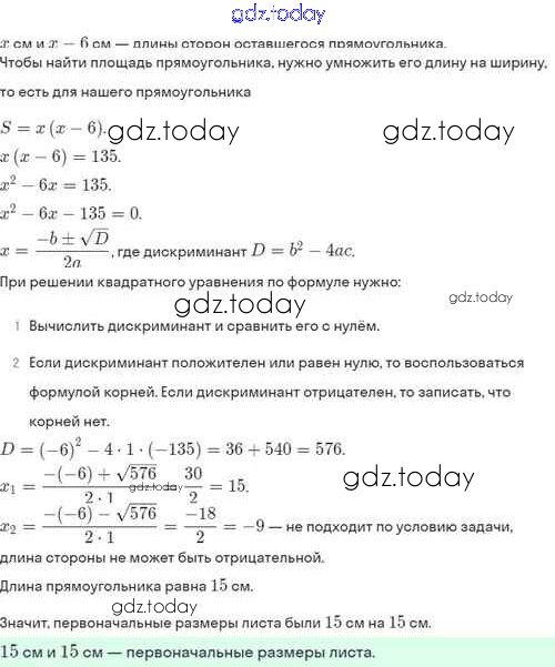 На страницах сайта gdz.today вы найдете учебный и вспомогательный материал, направленный на улучшения знаний школьной программы. ГДЗ - онлайн мир знаний Решение. §31. Ещё одна формула корней квадратного уравнения 31.8 Задачнику по Алгебре для 8 класса Мордкович, Александрова Базовый уровень Мнемозина 2021