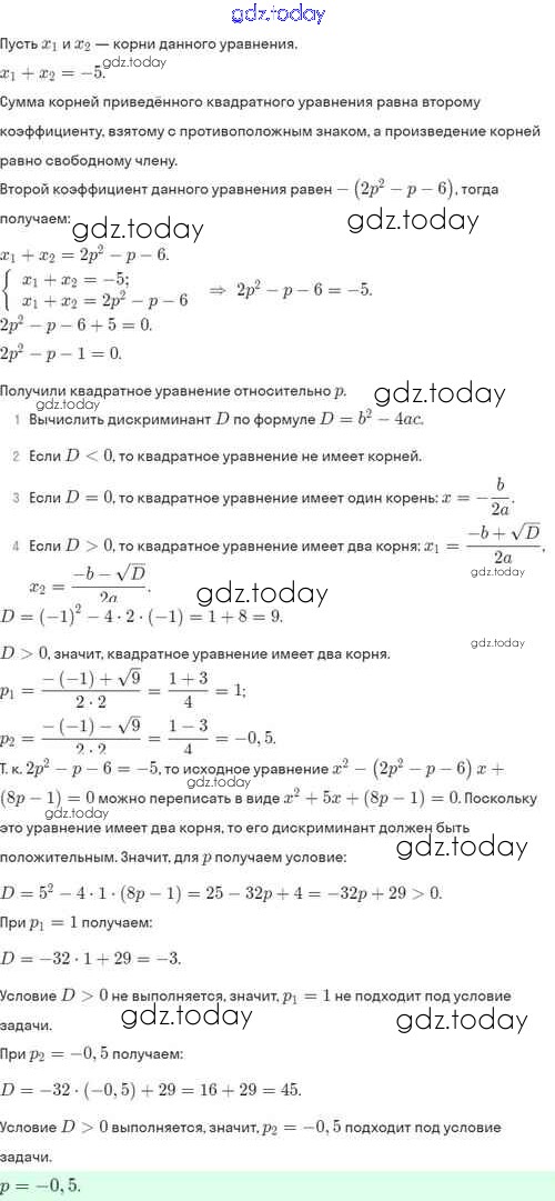 Ответы к Решение. §32. Теорема Виета и её применение 32.41 Задачнику по Алгебре для 8 класса Мордкович, Александрова Базовый уровень Мнемозина 2021