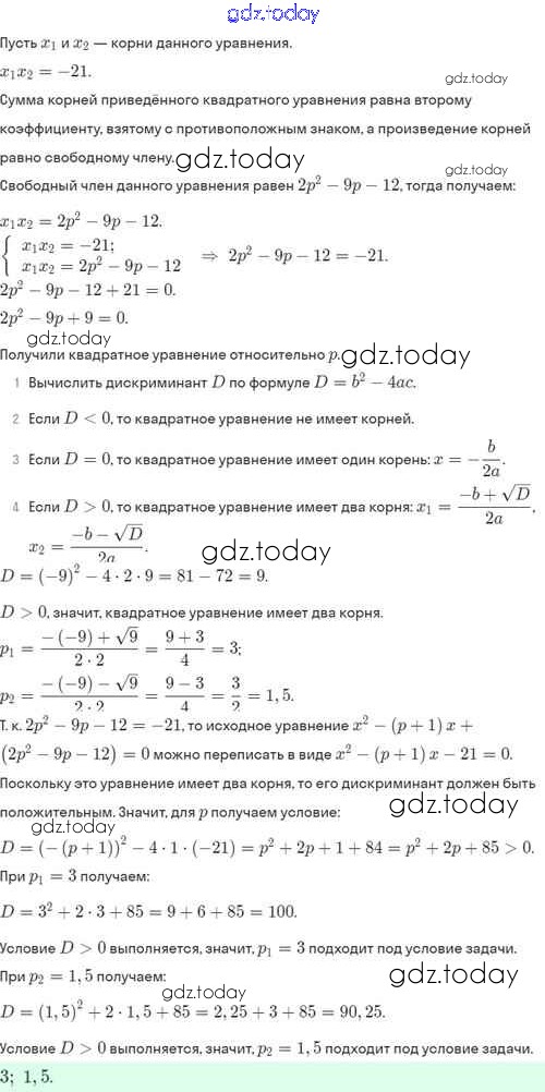 Ответы к Решение. §32. Теорема Виета и её применение 32.42 Задачнику по Алгебре для 8 класса Мордкович, Александрова Базовый уровень Мнемозина 2021