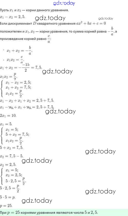 Ответы к Решение. §32. Теорема Виета и её применение 32.46 Задачнику по Алгебре для 8 класса Мордкович, Александрова Базовый уровень Мнемозина 2021
