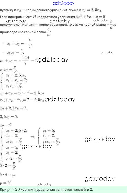 Ответы к Решение. §32. Теорема Виета и её применение 32.47 Задачнику по Алгебре для 8 класса Мордкович, Александрова Базовый уровень Мнемозина 2021