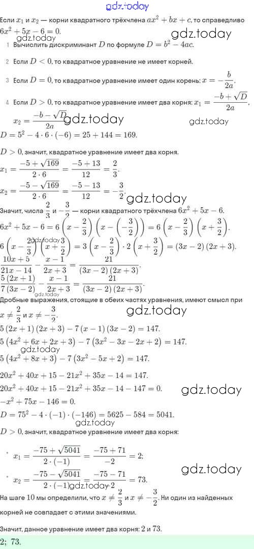 Ответы к Решение. §32. Теорема Виета и её применение 32.52 Задачнику по Алгебре для 8 класса Мордкович, Александрова Базовый уровень Мнемозина 2021