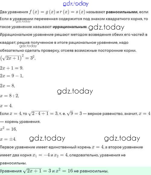 На страницах сайта gdz.today вы найдете учебный и вспомогательный материал, направленный на улучшения знаний школьной программы. ГДЗ - онлайн мир знаний Решение. §33. Иррациональные уравнения 33.14 Задачнику по Алгебре для 8 класса Мордкович, Александрова Базовый уровень Мнемозина 2021