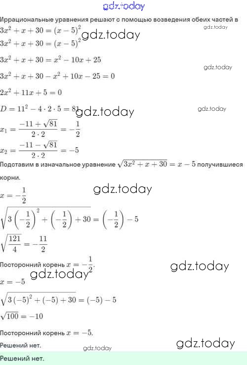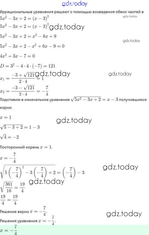 Ответы к Решение. §33. Иррациональные уравнения 33.18 Задачнику по Алгебре для 8 класса Мордкович, Александрова Базовый уровень Мнемозина 2021