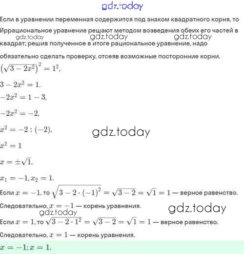 На страницах сайта gdz.today вы найдете учебный и вспомогательный материал, направленный на улучшения знаний школьной программы. ГДЗ - онлайн мир знаний Решение. §33. Иррациональные уравнения 33.2 Задачнику по Алгебре для 8 класса Мордкович, Александрова Базовый уровень Мнемозина 2021