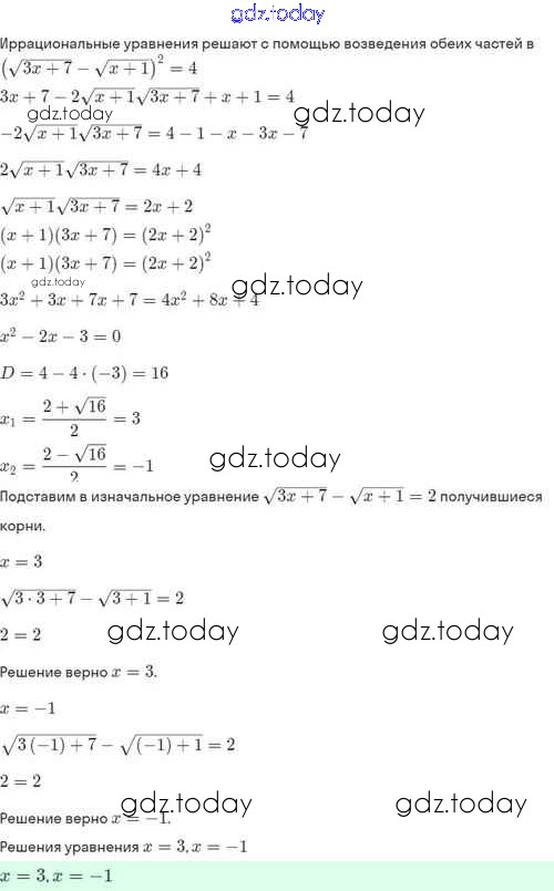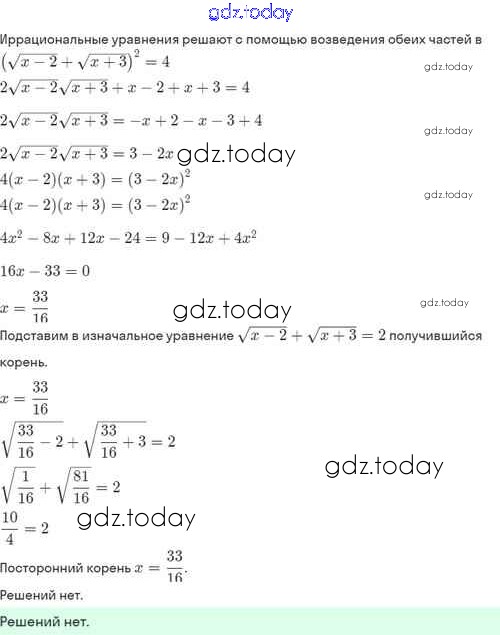 Ответы к Решение. §33. Иррациональные уравнения 33.20 Задачнику по Алгебре для 8 класса Мордкович, Александрова Базовый уровень Мнемозина 2021
