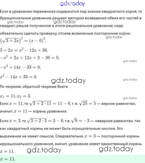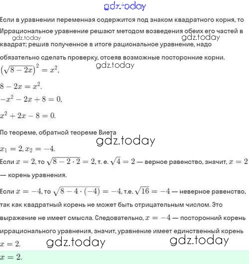 На страницах сайта gdz.today вы найдете учебный и вспомогательный материал, направленный на улучшения знаний школьной программы. ГДЗ - онлайн мир знаний Решение. §33. Иррациональные уравнения 33.8 Задачнику по Алгебре для 8 класса Мордкович, Александрова Базовый уровень Мнемозина 2021