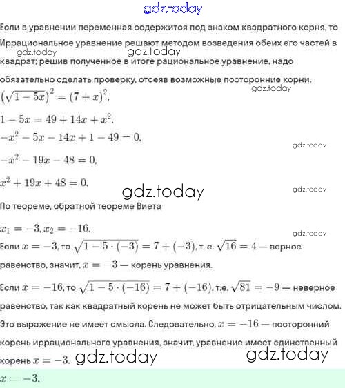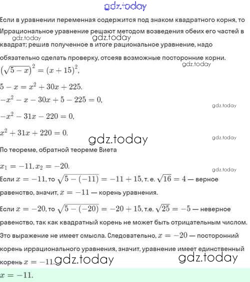 Ответы к Решение. §33. Иррациональные уравнения 33.8 Задачнику по Алгебре для 8 класса Мордкович, Александрова Базовый уровень Мнемозина 2021