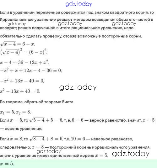 На страницах сайта gdz.today вы найдете учебный и вспомогательный материал, направленный на улучшения знаний школьной программы. ГДЗ - онлайн мир знаний Решение. §33. Иррациональные уравнения 33.9 Задачнику по Алгебре для 8 класса Мордкович, Александрова Базовый уровень Мнемозина 2021