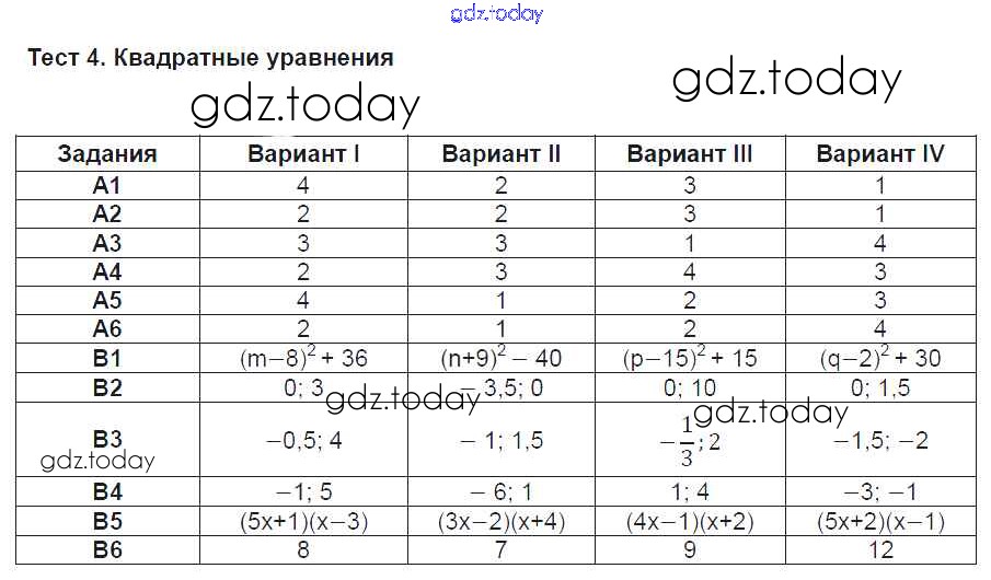 На страницах сайта gdz.today вы найдете учебный и вспомогательный материал, направленный на улучшения знаний школьной программы. ГДЗ - онлайн мир знаний Решение к тестам 4 Тестам по Алгебре для 8 класса Журавлев, Ермаков Экзамен УМК 2013