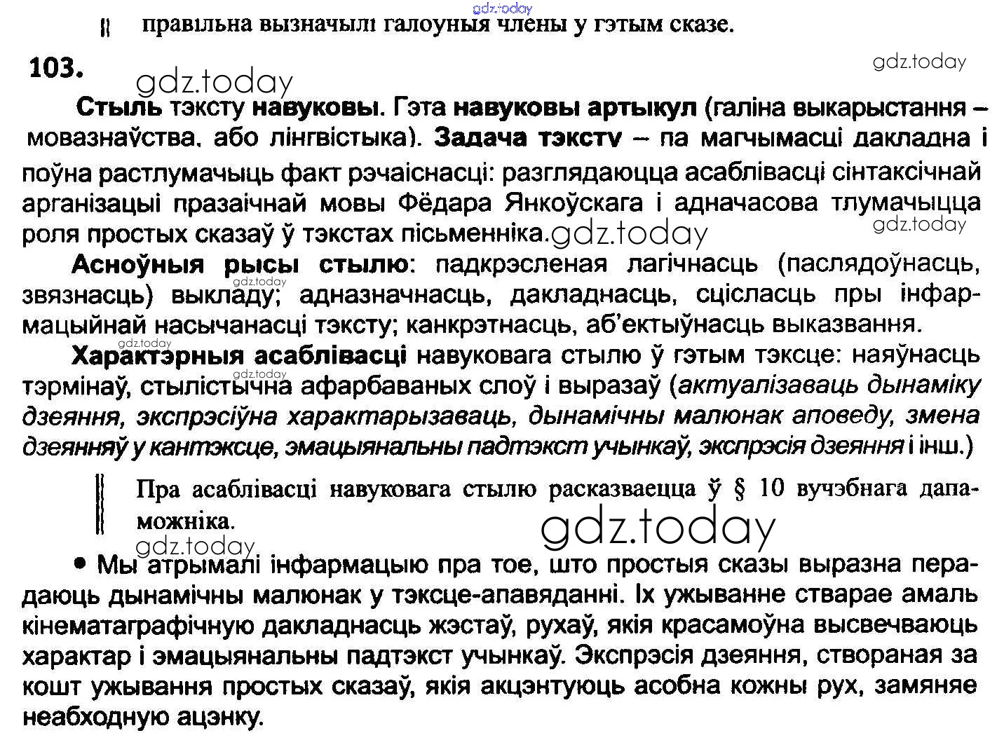 Ответы к Рашальнік да практыкаванняў 103 Учебнику по Белорусскому языку для 8 класса Бадзевіч, Саматыя Национальный институт образования 2015