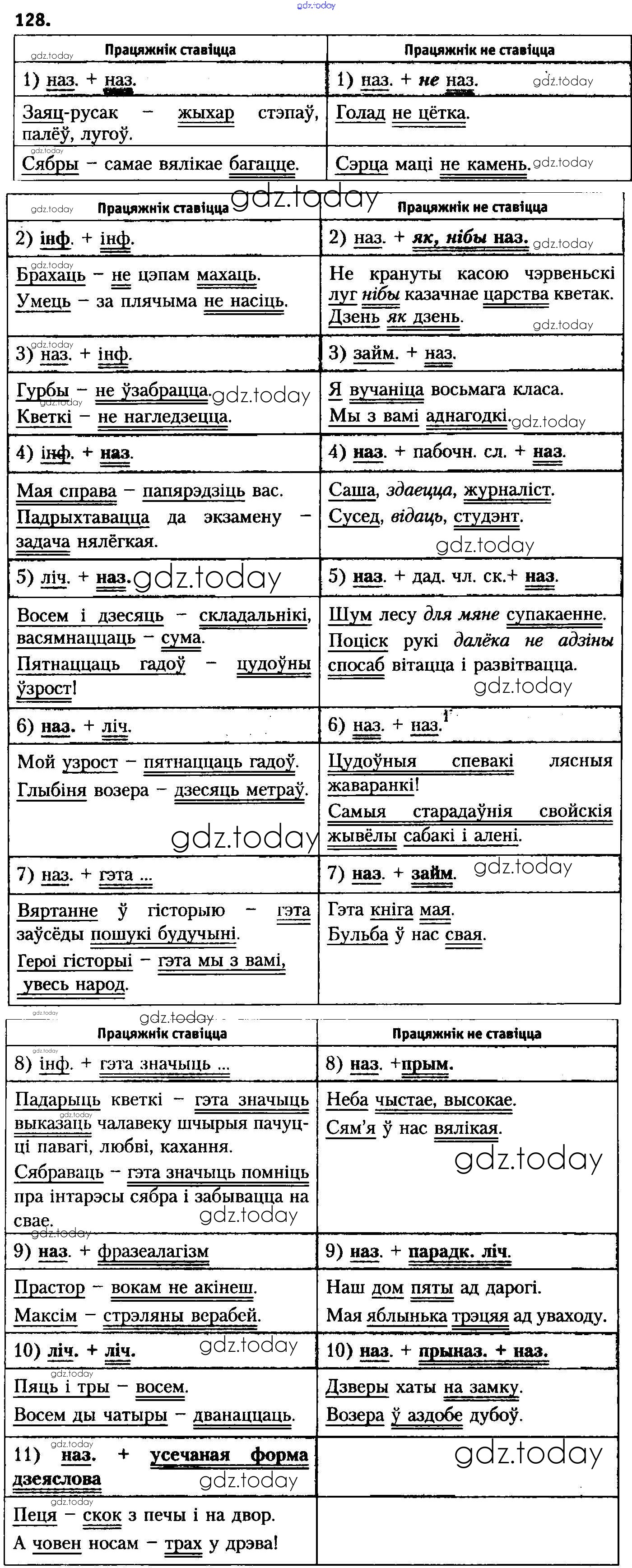 На страницах сайта gdz.today вы найдете учебный и вспомогательный материал, направленный на улучшения знаний школьной программы. ГДЗ - онлайн мир знаний Рашальнік да практыкаванняў 128 Учебнику по Белорусскому языку для 8 класса Бадзевіч, Саматыя Национальный институт образования 2015