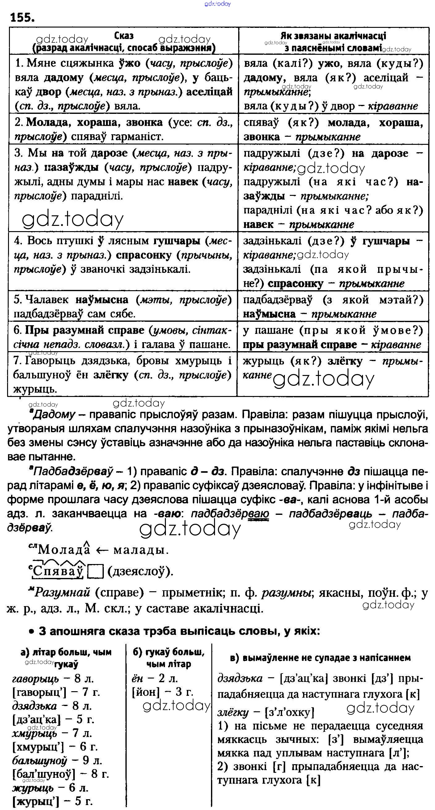 На страницах сайта gdz.today вы найдете учебный и вспомогательный материал, направленный на улучшения знаний школьной программы. ГДЗ - онлайн мир знаний Рашальнік да практыкаванняў 155 Учебнику по Белорусскому языку для 8 класса Бадзевіч, Саматыя Национальный институт образования 2015