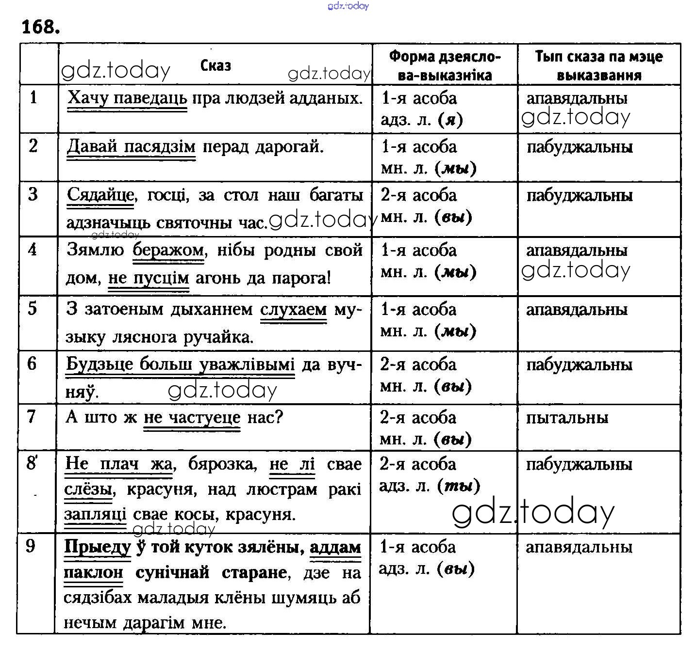 На страницах сайта gdz.today вы найдете учебный и вспомогательный материал, направленный на улучшения знаний школьной программы. ГДЗ - онлайн мир знаний Рашальнік да практыкаванняў 168 Учебнику по Белорусскому языку для 8 класса Бадзевіч, Саматыя Национальный институт образования 2015