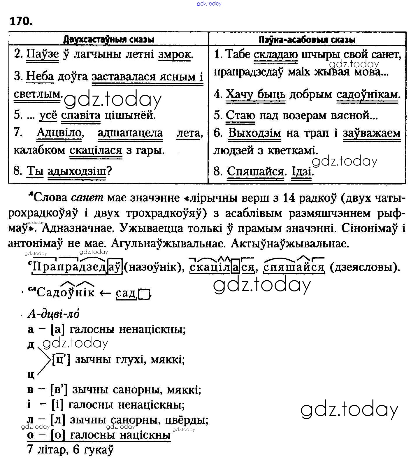 На страницах сайта gdz.today вы найдете учебный и вспомогательный материал, направленный на улучшения знаний школьной программы. ГДЗ - онлайн мир знаний Рашальнік да практыкаванняў 170 Учебнику по Белорусскому языку для 8 класса Бадзевіч, Саматыя Национальный институт образования 2015