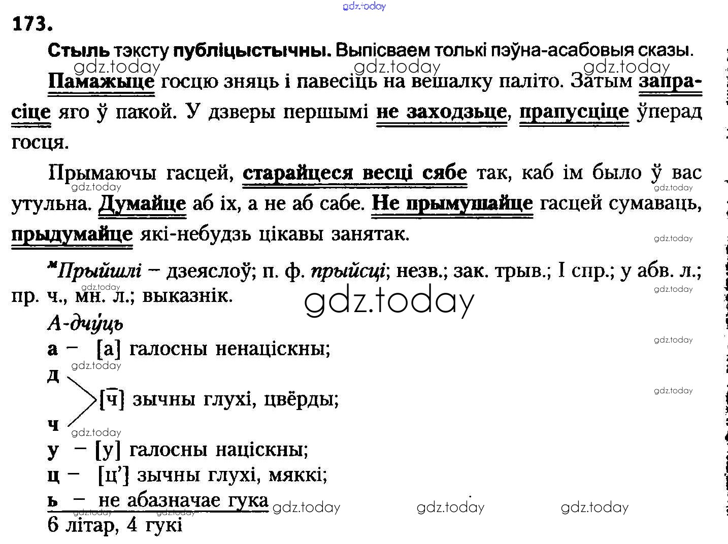На страницах сайта gdz.today вы найдете учебный и вспомогательный материал, направленный на улучшения знаний школьной программы. ГДЗ - онлайн мир знаний Рашальнік да практыкаванняў 173 Учебнику по Белорусскому языку для 8 класса Бадзевіч, Саматыя Национальный институт образования 2015