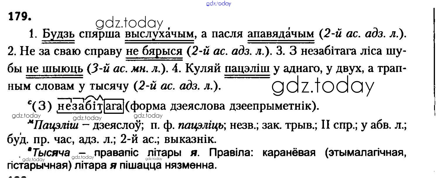 На страницах сайта gdz.today вы найдете учебный и вспомогательный материал, направленный на улучшения знаний школьной программы. ГДЗ - онлайн мир знаний Рашальнік да практыкаванняў 179 Учебнику по Белорусскому языку для 8 класса Бадзевіч, Саматыя Национальный институт образования 2015