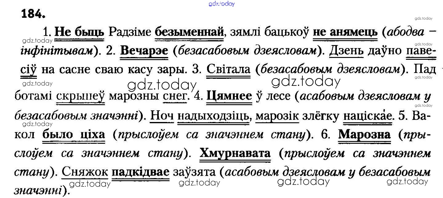 На страницах сайта gdz.today вы найдете учебный и вспомогательный материал, направленный на улучшения знаний школьной программы. ГДЗ - онлайн мир знаний Рашальнік да практыкаванняў 184 Учебнику по Белорусскому языку для 8 класса Бадзевіч, Саматыя Национальный институт образования 2015