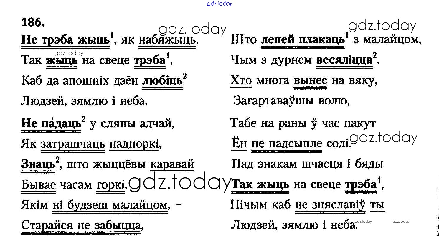 На страницах сайта gdz.today вы найдете учебный и вспомогательный материал, направленный на улучшения знаний школьной программы. ГДЗ - онлайн мир знаний Рашальнік да практыкаванняў 186 Учебнику по Белорусскому языку для 8 класса Бадзевіч, Саматыя Национальный институт образования 2015
