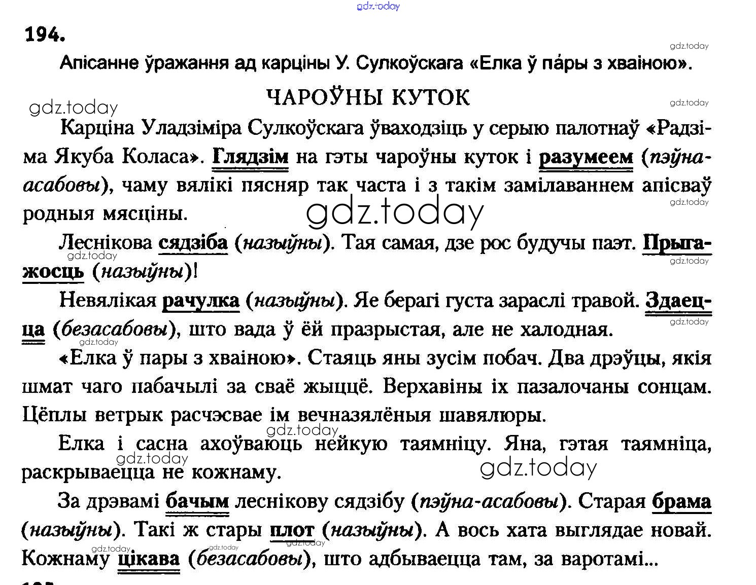 На страницах сайта gdz.today вы найдете учебный и вспомогательный материал, направленный на улучшения знаний школьной программы. ГДЗ - онлайн мир знаний Рашальнік да практыкаванняў 194 Учебнику по Белорусскому языку для 8 класса Бадзевіч, Саматыя Национальный институт образования 2015