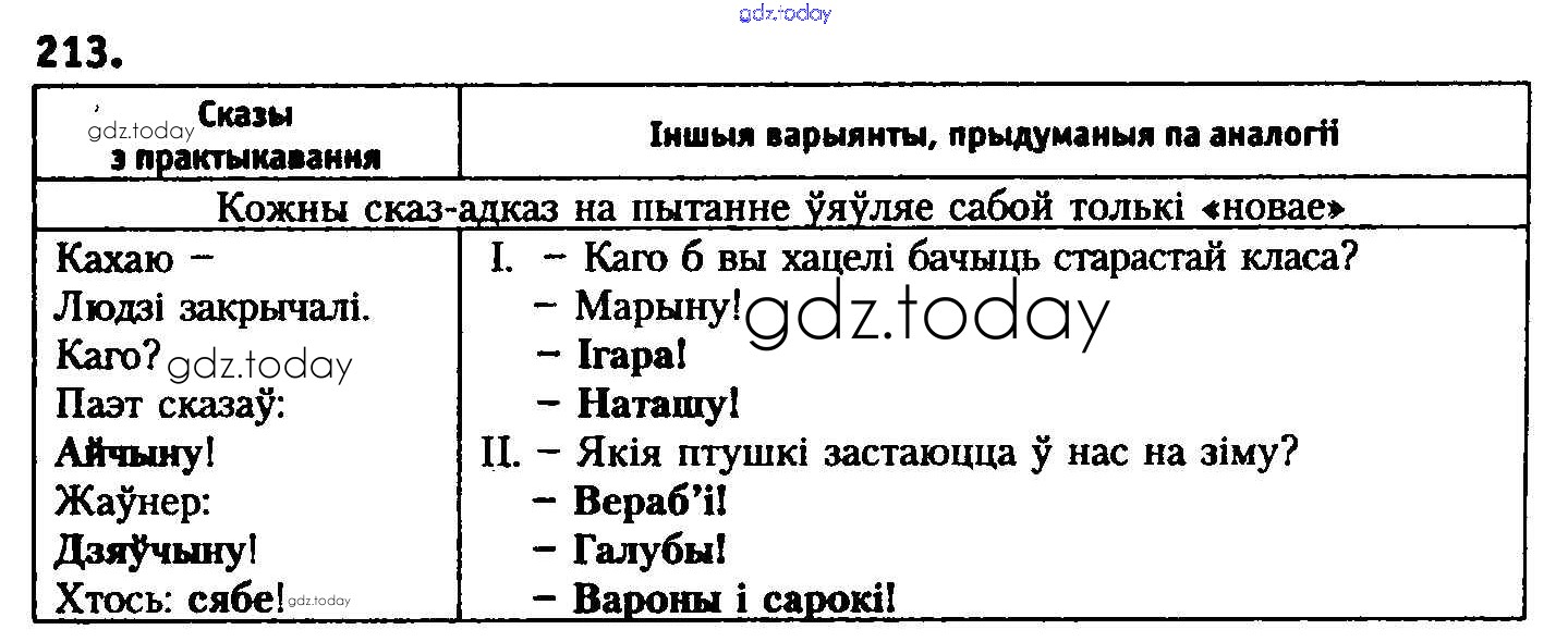 На страницах сайта gdz.today вы найдете учебный и вспомогательный материал, направленный на улучшения знаний школьной программы. ГДЗ - онлайн мир знаний Рашальнік да практыкаванняў 213 Учебнику по Белорусскому языку для 8 класса Бадзевіч, Саматыя Национальный институт образования 2015