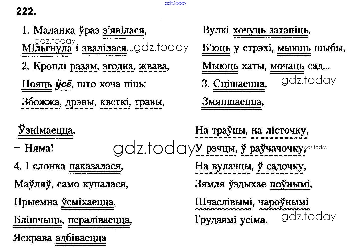 На страницах сайта gdz.today вы найдете учебный и вспомогательный материал, направленный на улучшения знаний школьной программы. ГДЗ - онлайн мир знаний Рашальнік да практыкаванняў 222 Учебнику по Белорусскому языку для 8 класса Бадзевіч, Саматыя Национальный институт образования 2015