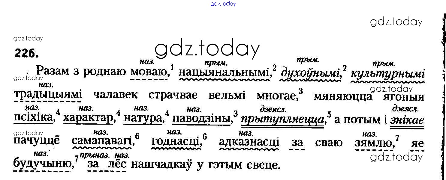 На страницах сайта gdz.today вы найдете учебный и вспомогательный материал, направленный на улучшения знаний школьной программы. ГДЗ - онлайн мир знаний Рашальнік да практыкаванняў 226 Учебнику по Белорусскому языку для 8 класса Бадзевіч, Саматыя Национальный институт образования 2015