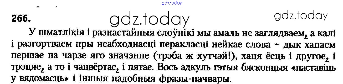 На страницах сайта gdz.today вы найдете учебный и вспомогательный материал, направленный на улучшения знаний школьной программы. ГДЗ - онлайн мир знаний Рашальнік да практыкаванняў 266 Учебнику по Белорусскому языку для 8 класса Бадзевіч, Саматыя Национальный институт образования 2015